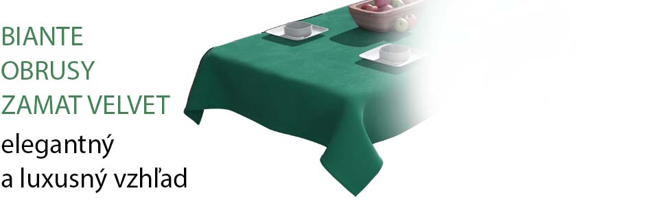 Kvalitné dekoračné obrusy Zamat Velvet Prémium sú praktickým doplnkom interiéru Vášho domu, bytu, chalupy a sú vhodné aj do hotelov a reštaurácií. Sú stálofarebné, nekrčivé a jednoduché na údržbu.